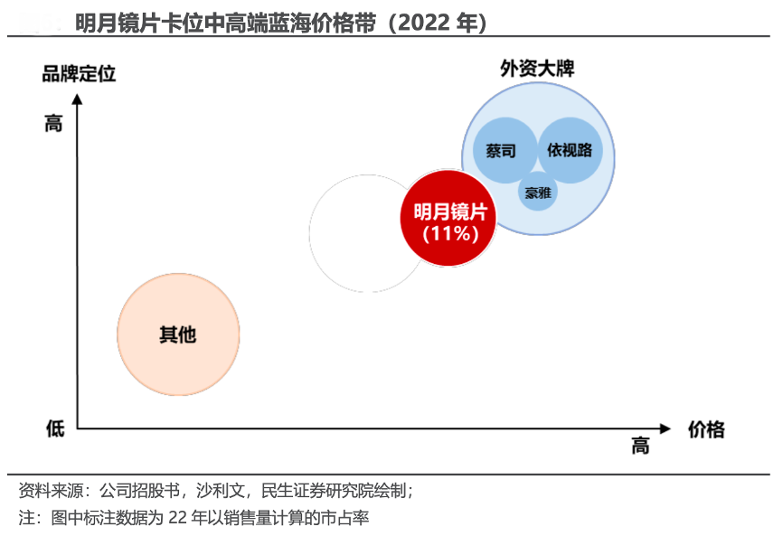 經典案例:根據公司官網、民生證券研究院等綜合資訊表明,憑借著對行業的深刻洞察與敏銳前瞻性,明月鏡片在 2018 年起便主動退出部分低折射率低端產品業務,轉型聚焦中高端鏡片市場,重點研發并推廣中高折射率、功能性鏡片等具備差異化競爭優勢的鏡片產品。