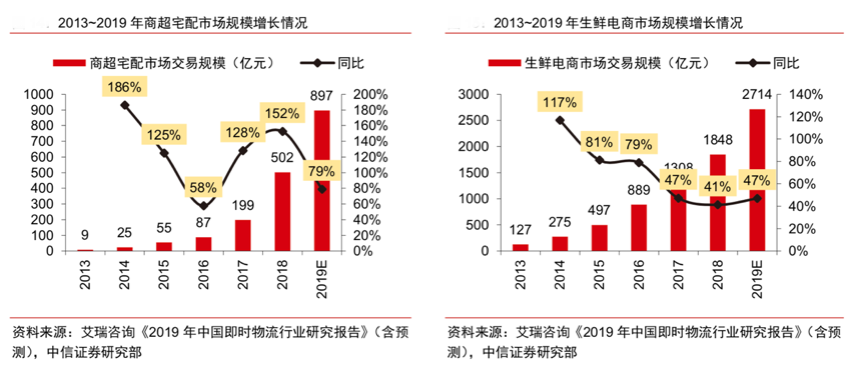 新零售業務迅猛成長帶來“即時即配業務增長”的同時,更優化了其配送的品類,大量的生活消費品及高頻消費品被大批量配送,商品在線率及生鮮商品點單率大幅提升,配送的商品也從從零食、服飾等一般商品到臨時性需求日用品,再到保質期較短的生鮮果蔬、鮮花蛋糕,品類結構持續提升,“商超宅配”進一步發展。