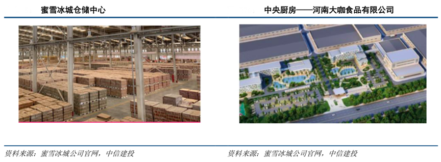 經典案例:根據蜜雪冰城公司官網、中信建投等綜合資訊表明,蜜雪冰城萬余家的門店對上游奶、茶、果、糖的采購有議價權,以低成本采購高品質食材,并通過自建工廠實現核心原料自產化,并在鄭州建立倉儲物流中心,并全面推行物流運輸費免費政策,形成研發生產+倉儲物流+運營管理的完整產業鏈。