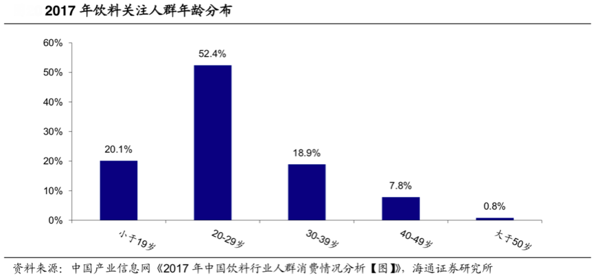 經典案例:根據中國產業信息網、海通證券研究所等綜合資訊表明,2017年飲料關注人群的年齡主要集中在20-29歲和30-39歲兩個年齡段,新世代消費已經成為“飲料消費主力人群”。以能量飲料為例,其除了堅持原有的抗疲勞之外,更增加了增強免疫力、包裝靚麗色等品類特征,產品消費場景從傳統的加班、熬夜、運動等疲勞類場景向聚會、旅行、電競、音樂節、日常保健等休閑類消費場景進化,休閑性、場景化品類特征更顯著。