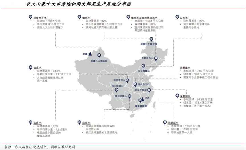 經(jīng)典案例:根據(jù)農(nóng)夫山泉招股說(shuō)明書、國(guó)聯(lián)證券研究所等綜合資訊表明,農(nóng)夫山泉當(dāng)前擁有10大主要水源地,均勻分布在全國(guó)各大城市群附近,能有效覆蓋主要城市群的需求。