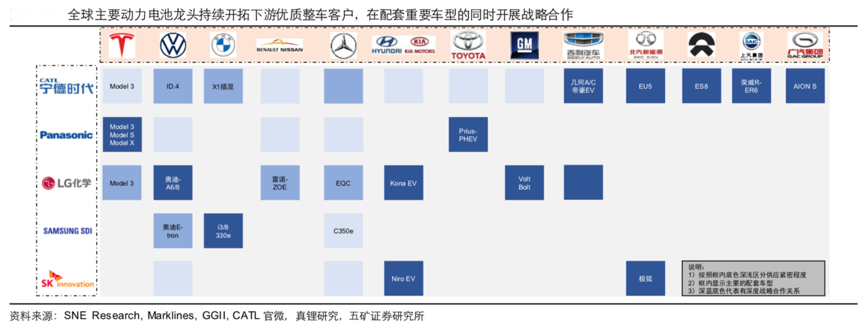 經典案例:根據SNE Research、Marklines、GGII、CATL官微、真鋰研究及五礦證券研究所等綜合資訊表明,聚焦國內動力電池市場,已呈現“全球競爭,強者恒強,多元機遇”的特征。其中,LG化學利用在高鎳領域的優勢以及配套特斯拉 Model 3 等重點車型,2020 年在中國市場打下舉足輕重的份額(1-9 月市占率約 14%),而寧德時代、比亞迪等中國本土的動力電池領軍企業也勢頭不減,2021年將加速擴張。同時,在政策與終端需求的指引下,例如功率型、快充型電 池等細分產品也迎來需求機遇,產品體系的多元將帶來更多差 異化的機會。