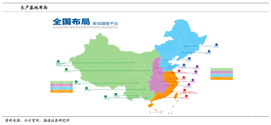 經典案例:根據公司官網、海通證券研究所等綜合資訊表明,達利食品在全國 18 個省區建立 21 家子公司共 36 個食品、飲料生產基地,1個馬鈴薯全粉生產基地,1家包裝彩印公司。截至 2019 年底,公司擁有超過 5400 名經銷商,銷售網絡涵蓋中國所有省市及大部分縣級行政區域,擁有超過 12100 名專職銷售人員維持及支持大約兩百萬個銷售點。