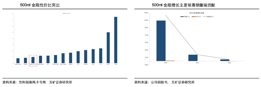 經典案例:根據公司招股書、飲料招商網、5號網、五礦證券研究所等綜合資訊表明,東鵬公司采用差異化戰略,在包裝上避開了價格較高的紅牛三片罐金屬包裝,采用PET塑料包裝,且創造性地配上防塵蓋以適應戶外,長途,旅行等多樣性場景,在此基礎上于 2009 年正式切入能量飲料賽道,推出了系列第一款 產品 250ml 金瓶特飲,定價 3.5 元/瓶,收獲了大批對價格敏感的藍領人 群如貨車司機,快遞員,外賣員的喜愛。