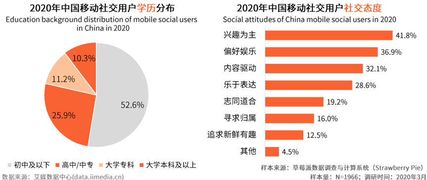 “同道者”美美與共,共同發展,“興趣相似”日益成為用戶社群集合經營的強大指引。根據艾媒數據中心等綜合資訊表明,超五成用戶學歷在初中(52.6%)及以上,注重興趣匹配,強化興趣為主(41.8%)、偏好娛樂(36.9%)、內容驅動(32.1%)。