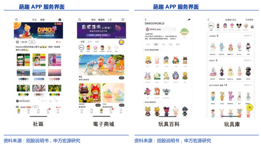 經典案例:根據招股說明書、申萬宏源研究等綜合資訊表明,泡泡瑪特自主開發(fā)了國內最專業(yè)的潮流玩具社交平臺——葩趣 APP,已經覆蓋超過 540 個潮玩品牌,平臺上可以看到粉絲發(fā)帖分 享和展示自己的收藏、設計師發(fā)布和出售自己的新作品,除了盲盒和手辦,還有關于潮玩的攝影、壁紙和周邊,還有“改娃”“轉娃”“換娃”等新的互動方式。
