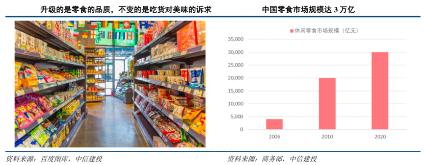 典型現(xiàn)象:根據(jù)百度圖庫、商務(wù)部、中信建投等綜合資訊表明,休閑零食的消費(fèi)需求源于其為消費(fèi)者帶來的美味滿足感:相較于一日三餐休閑食品不僅具有補(bǔ)充能量的作用,更起到減壓(鹵味、肉類)、保健(粗糧、堅(jiān)果)、社交(辦公室零食)等功能。尤其是我國食用文化根基深厚、歷史悠久的鹵味食品,因其消費(fèi)沖動(dòng)型和食用成癮性的特點(diǎn)復(fù)購率極高,鹵制品細(xì)分市場近 兩年 CAGR 高達(dá) 16.5%。