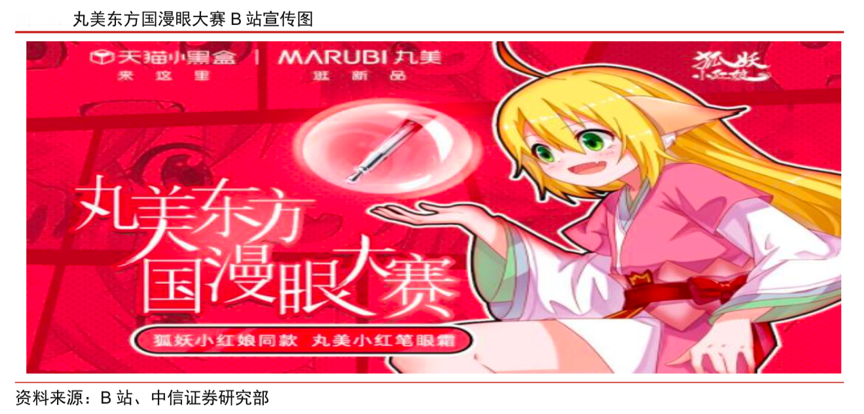 經典案例:根據B站、中信證券研究部等綜合資訊表明,以明星單品小紅筆為例:丸美最先在年輕人聚集地——B 站開始營銷。舉辦丸美東方國漫眼大賽,進行預熱。之后公司將主要資源投放至微博和小紅書。在微博,丸美品牌聯合了代言人楊穎和朱正廷等人的龐大粉絲后援會和各大 KOL 進行推廣。據不完全統計,在小紅書,丸美小紅筆眼霜話題已有 1064 人參與,留下 2121 篇筆記,獲得 1662.5 萬次瀏覽。最終,其通過李佳琦直播帶貨,在前期內容營銷預熱的基礎上,成功將產品打造成年度爆款眼霜。