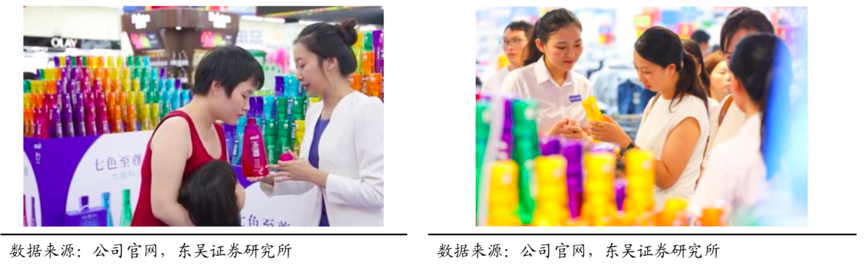 經典案例:根據公司官網、東吳證券研究所等綜合資訊表明, 2020 年中秋出現了難得一見的“藍 月亮”天文現象,藍月亮便在第一時間聯合媒體發出了“藍月亮”相關的科普討論,在微博等社交平臺發起"一起來看藍月亮""向藍月亮許個愿"等話題互動。在藍月亮打入市場時,通常在大賣場配置大量促銷員,展示講解洗衣液的成分和效果,教育了消費者并提升了銷售轉化率。