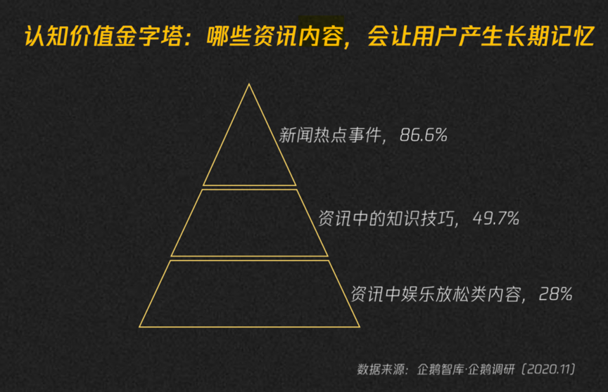 經典案例:品牌化傳播內容以“泛價值類內容”為主,根據企鵝智庫等綜合資訊表明,新聞熱點內容以86.6%顯著領先,知識技巧類內容處于金字塔的中部,差不多接近50%,而泛娛樂類內容則處于金字塔的底部——更多的這方面消費,可能處于用戶“看完即忘”的狀態。