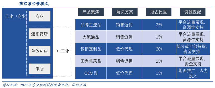 經典案例:根據2020京東全球科技探索者大會、華創(chuàng)證券等綜合資訊表明,京東健康擁有“在線藥品批發(fā)平臺-藥京采”,其平臺將上游藥企、醫(yī)藥公司及健康產品供貨商和分銷商與下游藥房連接起來,通過對整體過程進行數(shù)字化來提高整個醫(yī)療健康價值鏈的效率。截止至 2020 年 11 月,藥京采已經覆蓋了 全國 227,540 家終端的藥品經銷業(yè)務。
