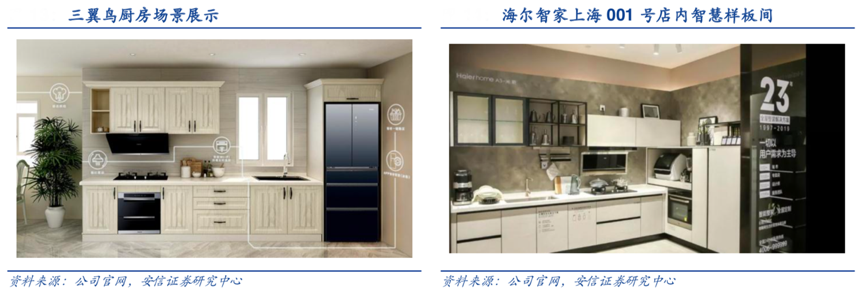經典案例:根據公司官網、安信證券研究中心等綜合資訊表明,2020 年 9 月,海爾發布了全球首個場景品牌——三翼鳥。區別于傳統的產品品牌,三翼鳥可以為用戶提供涵蓋陽臺、廚房、客廳、浴室、臥室等智慧家庭全場景定制化解決方案。其旨在滿足消費者全空間、全維度、全流程的場景生活需求,進一步拉動海爾多品類協同銷售。