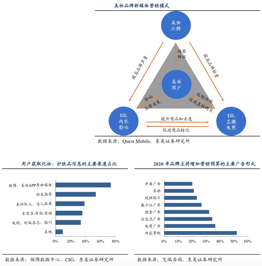 經典案例:根據Quest Mobile、微博數據中心、GIG、艾瑞咨詢、東吳證券研究所等綜合資訊表明,2019 年,77.5%的中國品牌都較為關注內容營銷;2020 年,51.7%的廣告主表示內容營銷將成為他們主要增加預算的營銷途徑。相比其他視頻貼片廣告或信息流廣告等,內容營銷傳遞成分和功效等有效信息,更適應目前互聯網的社區化特征,迎合消費者對內容的追求。