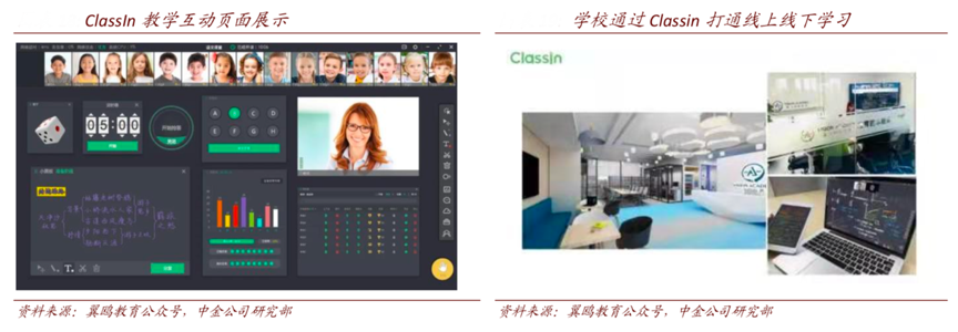 經典案例:根據翼鷗教育公眾號、中金公司研究部等綜合資訊表明,翼鷗教育產品通過技術最大化的賦能于教學,比如搭建的在線平臺能夠最大化地貼近線下討論式課堂:2020 年 8 月 ClassIn 行業獨家上線分組教學功能,學生可以分為 50 多個小組,每個小組擁有獨立的協作黑板和交流區 進行小組討論;同時,教師可自由切換任意小組進行旁聽或點評。