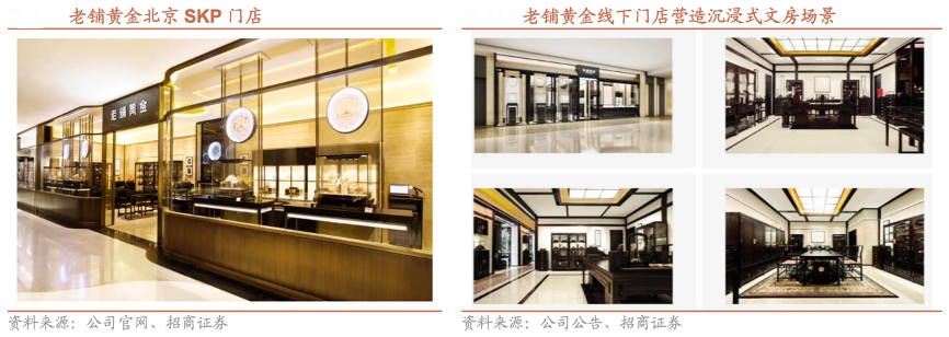 經(jīng)典案例:根據(jù)公司官網(wǎng)、公司公告、招商證券等綜合資訊表明,老鋪黃金在消費(fèi)場景建設(shè)上,探索并建立了古法黃金線下情景化經(jīng)營的 新模式,以經(jīng)典、雅致的中國文房場景為主題,從聲、光、嗅等多方面精細(xì)布置,提供沉浸式的傳統(tǒng)經(jīng)典文化意境,并通過優(yōu)質(zhì)的客戶服務(wù),進(jìn)一步打造高端的品牌形象。