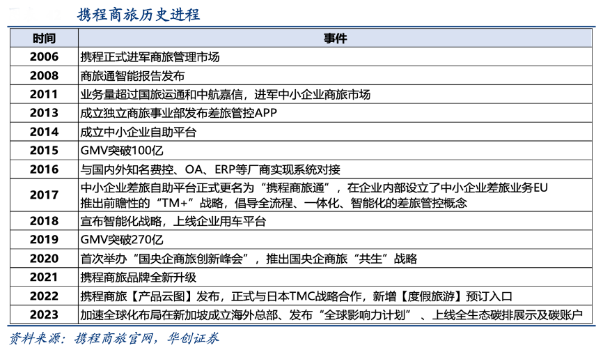經典案例:根據攜程商旅官網、華創證券等綜合資訊表明,攜程較早開始布局商旅的企業,截至 2023 年底,攜程商旅累計為 1.5 萬家大型企業、96 萬 中小企業提供數字化商旅服務。2023 年成立新加坡總部,一方面加速海外客戶的拓張,另一方面系加強海外 OTA 平臺 Trip.com 的供應鏈布局。