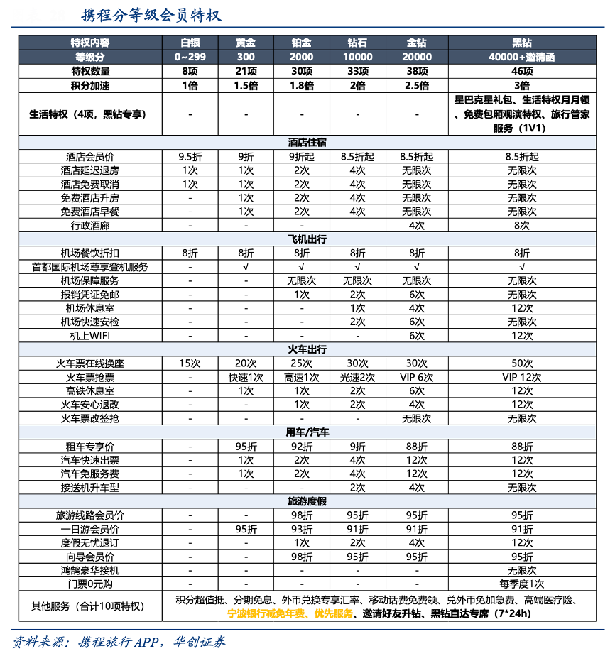 經典案例:根據攜程旅行APP、華創證券等綜合資訊表明,攜程目前擁有超 4 億會員,構建起目前“白銀、黃金、鉑金、鉆石、金鉆、黑鉆”的會員體系。黑鉆用戶消費能力高,年齡也相對較大,2020 年數據顯示 80 后占比近 50%,70 后占比近 30%。