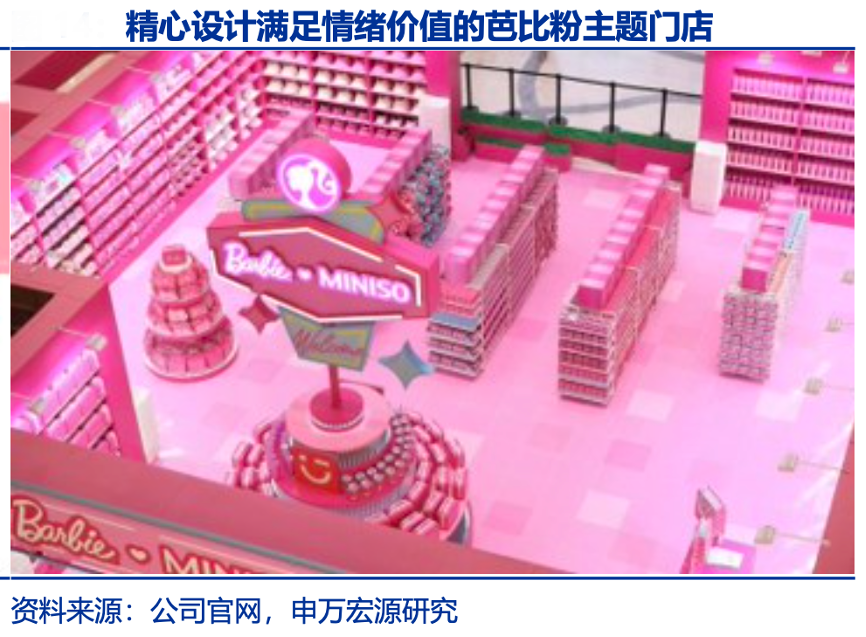 經典案例:根據公司官網、申萬宏源研究等綜合資訊表明,名創優品在芭比、Loopy 兩次聯名中,主題門店頗具亮點。如長沙芭比概念店和杭州 Loopy 旗艦 店等,利用鮮明 IP 主題設計(如芭比粉色調、Loopy 沉浸式場景)及創新技術(如裸眼 3D 天幕),成為城市網紅打卡點。