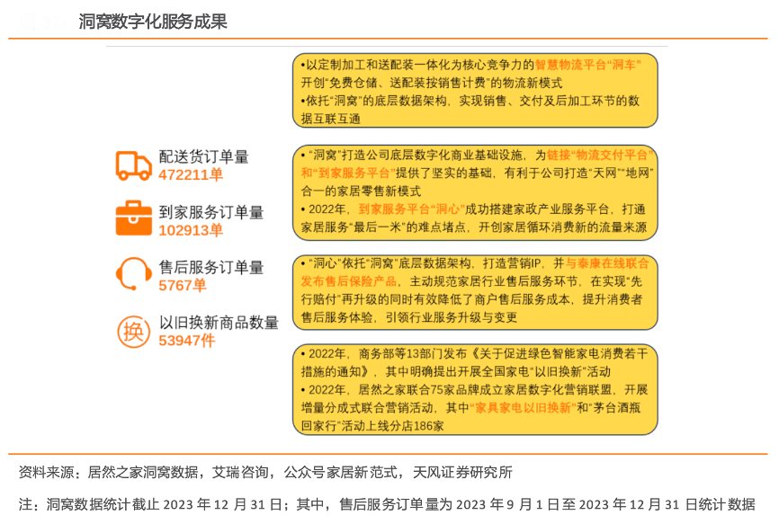 經(jīng)典案例:根據(jù)居然之家洞窩數(shù)據(jù)、艾瑞咨詢、公眾號家居新范式、天風(fēng)證券研究所等綜合資訊表明,居然之家以洞窩為核心延展全家居產(chǎn)業(yè)鏈,優(yōu)化商戶及消費(fèi)者服務(wù)體驗(yàn)。洞窩通過打通工 廠、經(jīng) 銷商、 賣場、顧 客、物 流、到 家服務(wù) 的全產(chǎn) 業(yè)鏈數(shù) 據(jù),實(shí) 現(xiàn)實(shí)體 家 居賣場運(yùn)營管理全流程的數(shù)字化,2022 年上 線“洞窩”的門店在停業(yè)期間銷售額(GMV)仍達(dá)到平時(shí)線下開業(yè)時(shí)的 30%-35%,同時(shí)持 續(xù)賦能公司“一店兩制”的招商模式 轉(zhuǎn)型。
