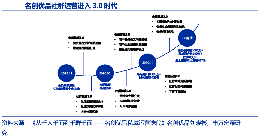 經(jīng)典案例:根據(jù)《從千人千面到千群千面—名創(chuàng)優(yōu)品私域運(yùn)營(yíng)迭代》名創(chuàng)優(yōu)品劉曉彬、申萬宏源研究等綜合資訊表明,在用戶運(yùn)營(yíng)方面,名創(chuàng)優(yōu)品深耕會(huì)員與私域,管理超 8300 萬會(huì)員和 3900 萬私域用戶,其中 500 萬加入微信社群,這些高質(zhì)量用戶 2023 年貢獻(xiàn)了 57%(會(huì)員) 和 40%(私域)的銷售業(yè)績(jī)。