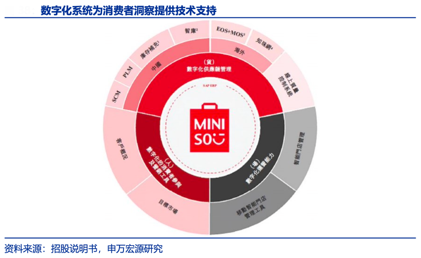經典案例:根據招股說明書、申萬宏源研究等綜合資訊表明,名創優品依托 EOS 全球知識共享平臺、MIS 海外工作平臺、CRM 會員系統、社會輿情管控系統等,整合覆蓋超 7000 萬注冊會員和超 3000 萬私域用戶的大數據資源(數據來自騰訊新聞),結合外派員工的本地化調研及三方數據合作,提升消費市場需 求洞察能力,確保 IP 本土化的科學性和實效性。