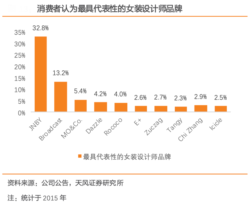 經典案例:根據公司公告、天風證券研究所等綜合資訊表明,中國設計師品牌時裝市場相對分散,2015 年以零售額 計算十大市場參與者占市場份額的 43.2%。江南布衣于 2015 年在設計師品牌時裝公司中取得最 高的零售額及 9.6%的市場份額,占中國總體服裝市場份額 0.2%,是 2015 年中國最大的設 計師品牌時裝公司。