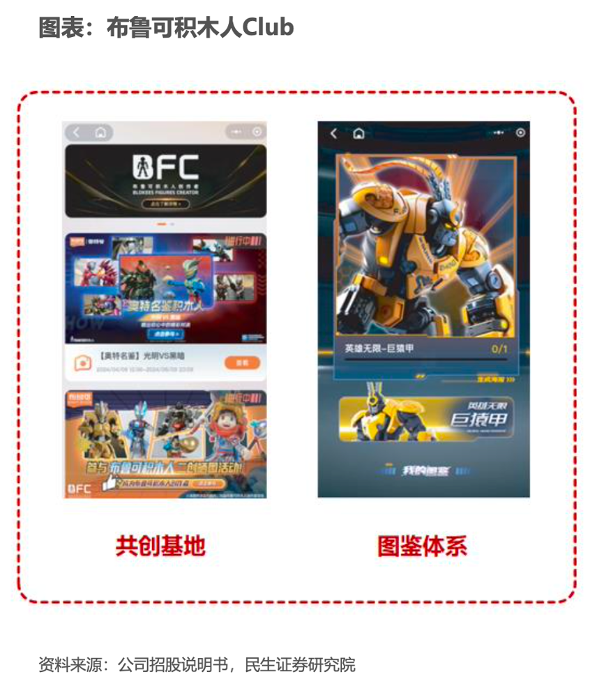 經典案例:根據公司招股說明書、民生證券研究院等綜合資訊表明,布魯可官方通過布魯可積木人Club中的「共創基地」功能舉辦投票活動,鼓勵消費者參與新產品的開發。得票最高的產品提案可能轉化為真正的產品。消費者可通過掃描產品包裝上的二維碼及產品附帶的角色身份卡在布魯可積木人Club上注冊其產品。
