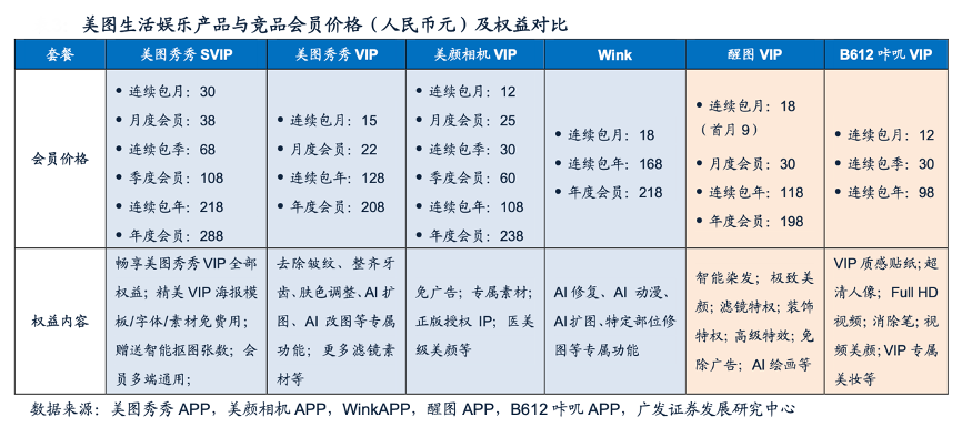 經(jīng)典案例:根據(jù)美圖秀秀APP、美顏相機APP、winkapp、醒圖APP、B612咔嘰APP、廣發(fā)證券發(fā)展研究中心等綜合資訊表明,美圖秀秀和 美顏相機為用戶提供了免費基礎(chǔ)版和會員模式,在產(chǎn)品定價方面,排除美圖秀秀的SVIP,美顏相機和B612咔嘰相對便宜,醒圖和Wink價格 相對較高。