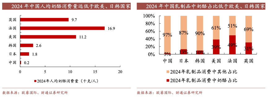 經(jīng)典案例:根據(jù)歐睿國際、財通證券研究所等綜合資訊表明,與歐美國家相比,盡管奶酪并非中國人飲食結(jié)構(gòu)中的必需品,但在奶酪行業(yè)本土化探索的推動下,隨著我國居民健康意識的提升與對西式飲食需求的增加,長期而言我國奶酪行業(yè)市場規(guī)模仍有廣闊的增長空間。