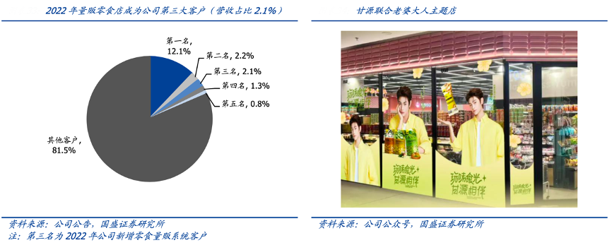 經典案例:根據公司公告、公司公眾號、國盛證券研究所等綜合資訊表明,甘源量販零食系統自 21H2 進入快速發展階段,甘源于 2022 年擁抱量販零食系統,從頭部零食很忙、零食有鳴、趙一鳴等合作逐步拓展腰部、尾部系統合作,以量販自身展店+SKU 迭代實現快速發展,2024 年量販零食店已占甘源 20%以上營收比重。