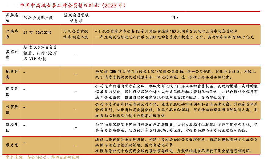 經(jīng)典案例:根據(jù)各公司公告、華西證券研究所等綜合資訊表明,江南布衣公司堅持以數(shù)據(jù)為驅(qū)動、技術(shù)為載體、粉絲經(jīng)濟為核心,持續(xù)不斷地為粉絲創(chuàng)造及提供增值服務(wù)的場景和觸點建設(shè),用戶粘性強,打造一套“江南布衣粉絲經(jīng)濟”體系。FY2019-2024H1,公司會員賬 戶數(shù)由逾 360 萬增長到逾 740 萬,F(xiàn)Y2024 零售額貢獻占比由七成增長至逾八成。