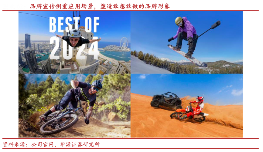 經典案例:根據公司官網、華源證券研究所等綜合資訊表明,影石公司品牌 Slogan 為“Think Bold(始于敢想)”,堅持直面挑戰、大膽嘗試的品牌文化。公司并不過分強調自身產品參數,而是主要宣傳產品的使用場景與使用體驗,以喚醒用戶內心深處對冒險、勇敢生活的渴望,以及對創作、分享的熱情。