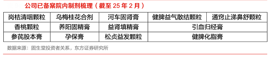 經典案例:根據固生堂投資者關系、東方證券研究所等綜合資訊表明,目前,固生堂公司擁有名醫協定方超 500 個,累計完成 13 個院內制劑備案,其院內制劑中心 已完成工程建設、設備驗收和試生產,并已取得醫療機構制備許可證,打通從制劑研發、批量生產到區域調劑合規使用的全鏈條,可在線上平臺及線下門店通過處方銷售。