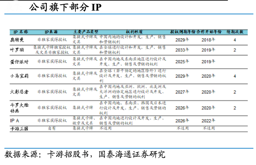 經(jīng)典案例:根據(jù)卡游招股書、國(guó)泰海通證券研究等綜合資訊表明,為吸引廣大消費(fèi)者,卡游公司通過(guò)來(lái)自 IP 合作伙 伴的授權(quán)和開發(fā)自有 IP 不斷擴(kuò)充 IP 矩陣,IP 數(shù)量由截至 2022 年 12 月 31 日的 30 個(gè)增加至截至 2023 年 12 月 31 日的 37 個(gè),其后增加至截至 2024 年 12 月 31 日的 70 個(gè)。
