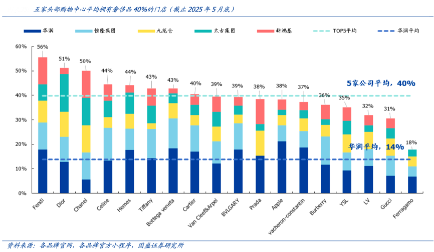 經典案例:根據各品牌官網、各品牌官方小程序、公司官網、國盛證券研究所等綜合資訊表明,華潤萬象生活公司在重奢賽道已經具備相當大的規?;A和品牌基礎,是公司高端定位與差異化競爭實現的方式。截止 2024 年底,萬象城在營重奢購物中心 14 座,已經形成一定的連鎖規模。