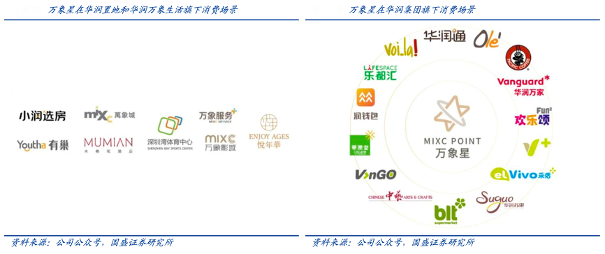 經典案例:根據公司公眾號、國盛證券研究所等綜合資訊表明,華潤萬象生活搭建“萬象星”大會員體系,公司 2022 年正式發布大會員積分品牌“萬象星”,注冊成為萬象星用戶,在華潤置地及華潤萬象生活旗下各場景消費或參與活動可獲得獎勵積分,積分可以用于華潤置地旗下住宅、有巢公寓、木棉花酒店、悅年華頤養中心、萬象影城、文體場館、華潤萬象生活運 營的購物中心及物業社區的全場景服務。